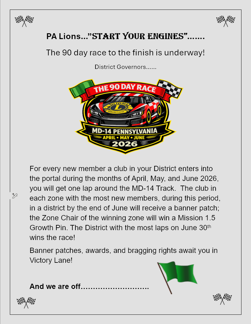 NEW DG Brad's MADG Report is now available for use with the updated point contest. Please also note that this year, completed reports will be email to Lion Doug Pavkovich. LionPavkovich@gmail.com