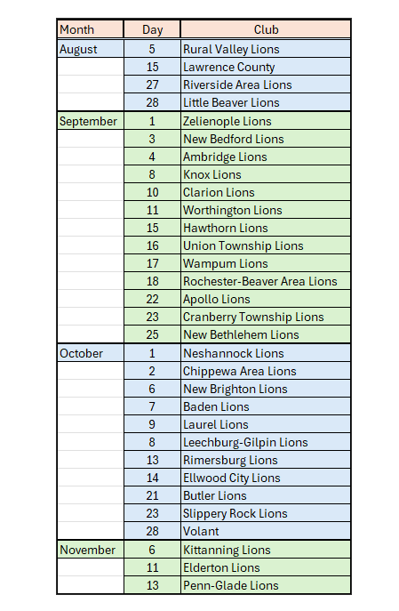 District Governor Brad's Club Visitation Schedule 2025-2026