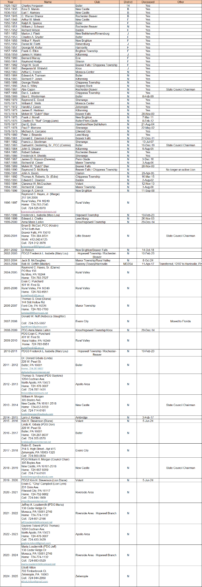 District 14-N Past District Governors